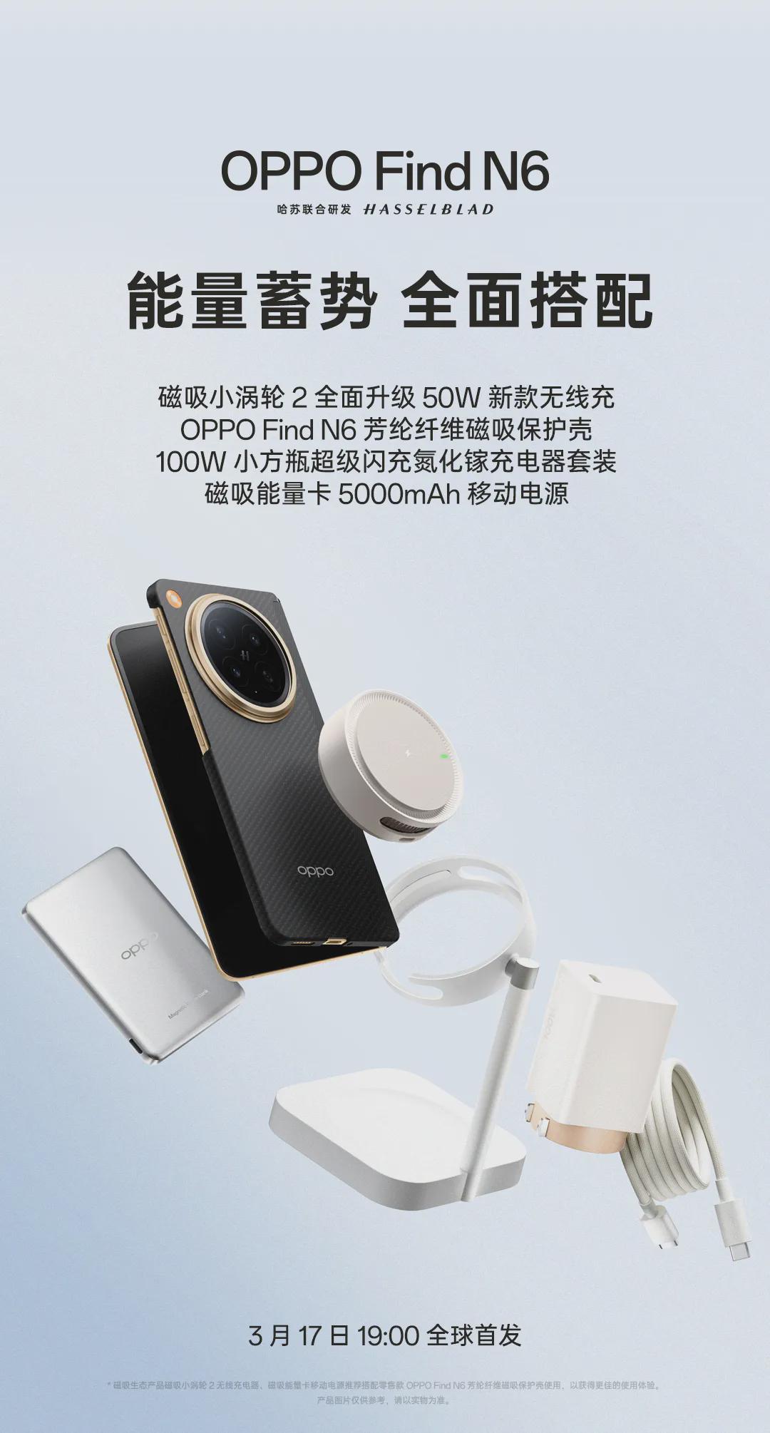 首先上市时间,OPPO已经官宣,Find N6将于3月17日晚上19:00,正式全球首发。